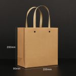 These stock brown kraft paper bags have a sturdy and comfortable hard paper handle that guarantees the bag can support heavier loads without tearing, making it appropriate for carrying a range of goods from groceries to clothes. The paper handle is a practical option for retail businesses, events, or personal use; unlike plastic handles that contribute to waste and pollution, hard paper handles are recyclable and biodegradable, supporting a more sustainable packaging solution. The paper handles’ natural appearance goes well with the kraft paper bag’s rustic style and adds to its eco-friendly image.