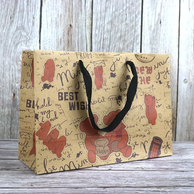 Cartoon brown kraft paper shopping bags are a popular packaging option for businesses in a variety of industries in an era where sustainability and style go hand in hand. Whether you’re in the retail, fashion, or even eco-friendly product lines industry, these bags offer a flexible and environmentally conscious solution to meet your packaging needs. Designed with both functionality and style in mind, these kraft paper bags are perfect for small retail shops, pop-up stores, and even as a unique branding tool for larger enterprises. This article explores the many features and advantages of these adorable cartoon-themed brown kraft paper shopping bags, paying particular attention to their material, design, and customization options. These bags are more than just a practical product carrier; they are an extension of your brand’s identity, communicating both environmental responsibility and fun.
