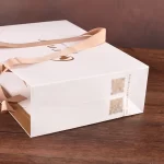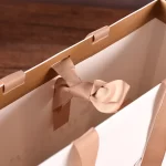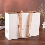 The Reusable Carrier Paper Bag for Clothes has handles made of grosgrain ribbon, a fabric renowned for its durability and opulent feel. Not only are the grosgrain ribbon handles strong enough to support bulkier objects, but they also elevate the bag’s overall appearance. They have a firm grip and are pleasant to handle, allowing shoppers to carry their purchases with ease.