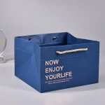 These square paper shopping bags’ knotted rope handles are one of its most notable features. These handles give the overall design a sophisticated touch in addition to being useful. The twisted rope handles are made of sturdy materials, making them comfortable to hold and capable of safely carrying bigger objects. Whether clients are driving to their car or just strolling around the store, its soft and smooth grip guarantees a hassle-free shopping experience.