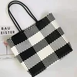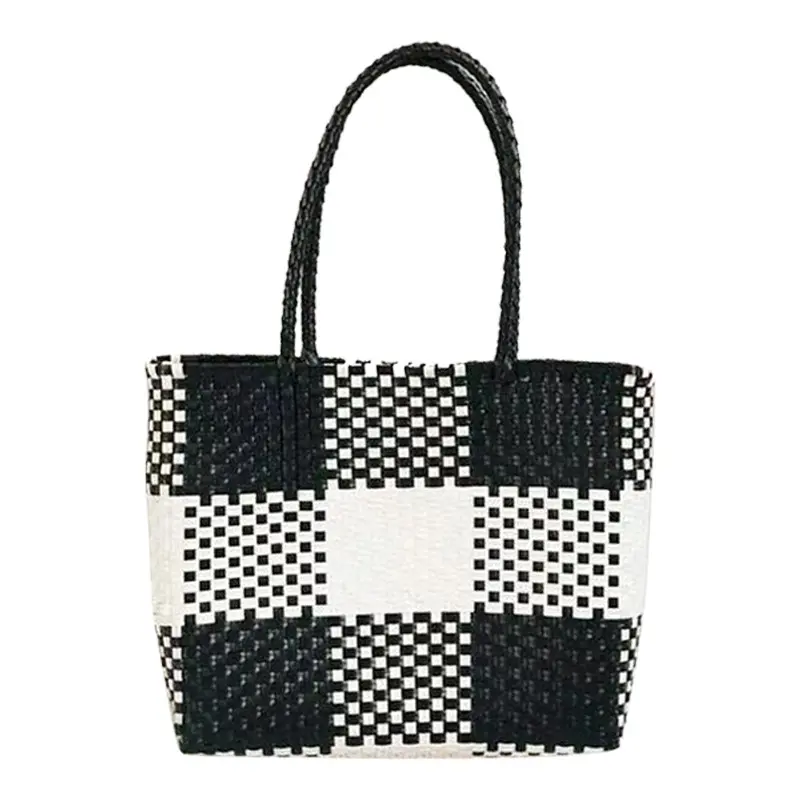 This tote bag’s body is composed of sturdy plastic that has been braided into a structure like a wire to give the design strength and flexibility. This combination results in a durable, long-lasting bag that keeps its form and beauty even after frequent usage.