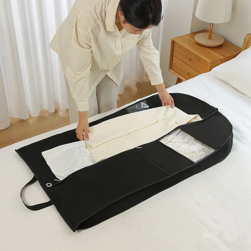 The sturdy non-woven fabric used to make the bag body also serves as the material for the integrated handle. Its 40 cm length and 2.5 cm width provide a comfortable grip for hanging the bag in a closet or carrying clothes. Adding to the bag’s portability, the handle is sturdy enough to hold heavier clothing items.