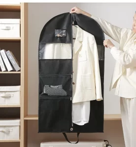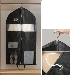 This garment storage bag’s nylon #5 zipper ensures a smooth opening and closing, lowering the possibility of snags or jams. Because of its strength and flexibility, nylon zippers are perfect for long-term usage.