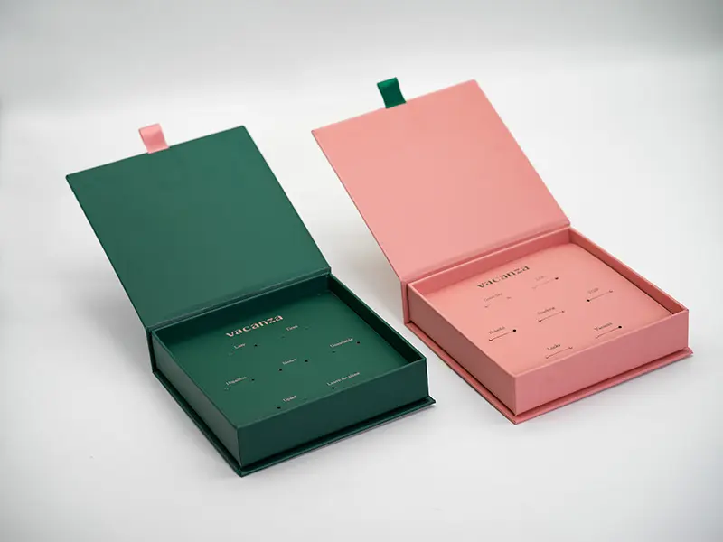 Get in touch with us right now to go over your options for custom size, insert design, printing, and branding, and allow us to develop the ideal luxury earring storage box for you!