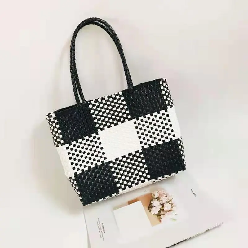 This tote bag’s body is composed of sturdy plastic that has been braided into a structure like a wire to give the design strength and flexibility. This combination results in a durable, long-lasting bag that keeps its form and beauty even after frequent usage.