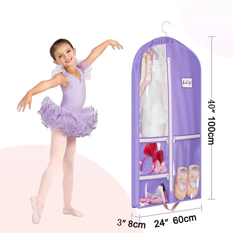 Keeping costumes safe and organized is crucial, whether you’re a parent organizing many recital outfits, a theater performer getting ready for your next performance, or a dancer getting ready for a competition. Our costume garment bags are made specifically to do just that, providing a balance of practicality, longevity, and ease of use. This bag, which is made of high-quality non-woven fabric and PVC, offers a fashionable and secure way to store and transport formal clothes, costumes, and uniforms.